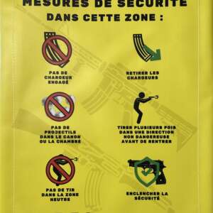Signalétique pour signaler vos partie d’Airsoft. Cette signalétique à installer à tous les accès de vos terrains, permet de sensibiliser sur le port des protections oculaires tout en rassurant sur l’activité. Elle est composée d’une bâche résistante aux conditions extérieures et dispose d’oeillets pour pouvoir facilement l’accrocher. Nous vous conseillons de l’utiliser avec des tendeurs. Dimensions : 59,4 cm x 42 cm Poids : 150 g